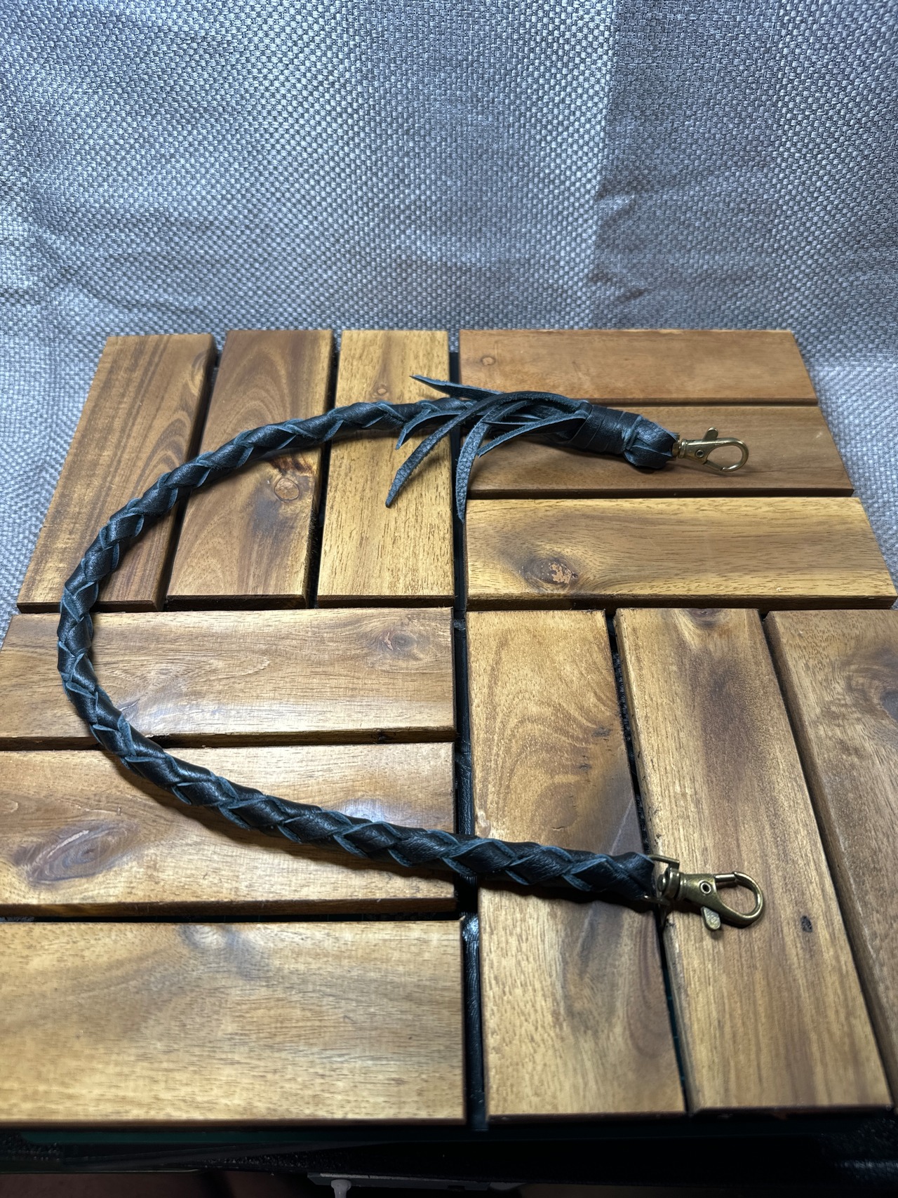四つ編み ストラップは、牛革製のウォレットチェーン。個性的な四つ編みデザインがアクセントになり、おしゃれさを演出します。シンプルなウォレットに付けるだけで、一気にスタイリッシュな雰囲気に仕上げることができます。手触りの良い牛革素材を使用しているので、長時間身につけていても快適な着用感が楽しめます。